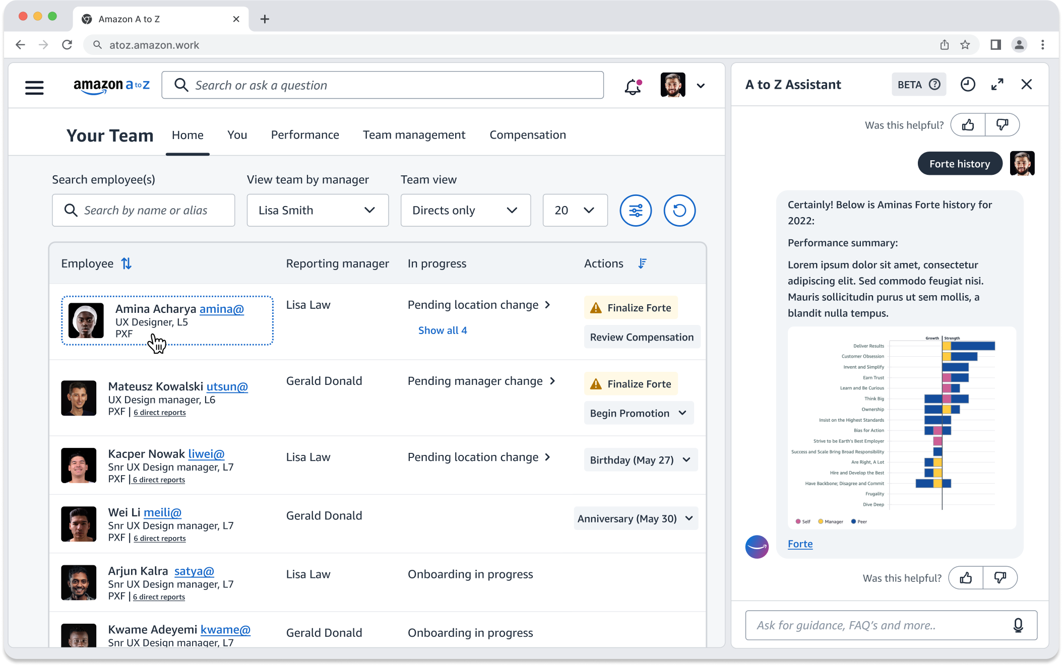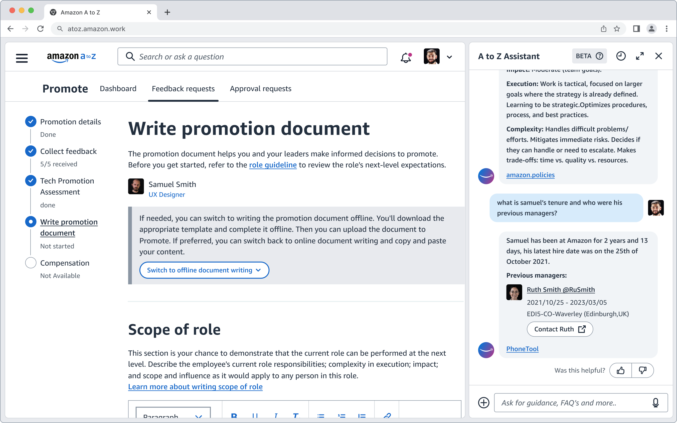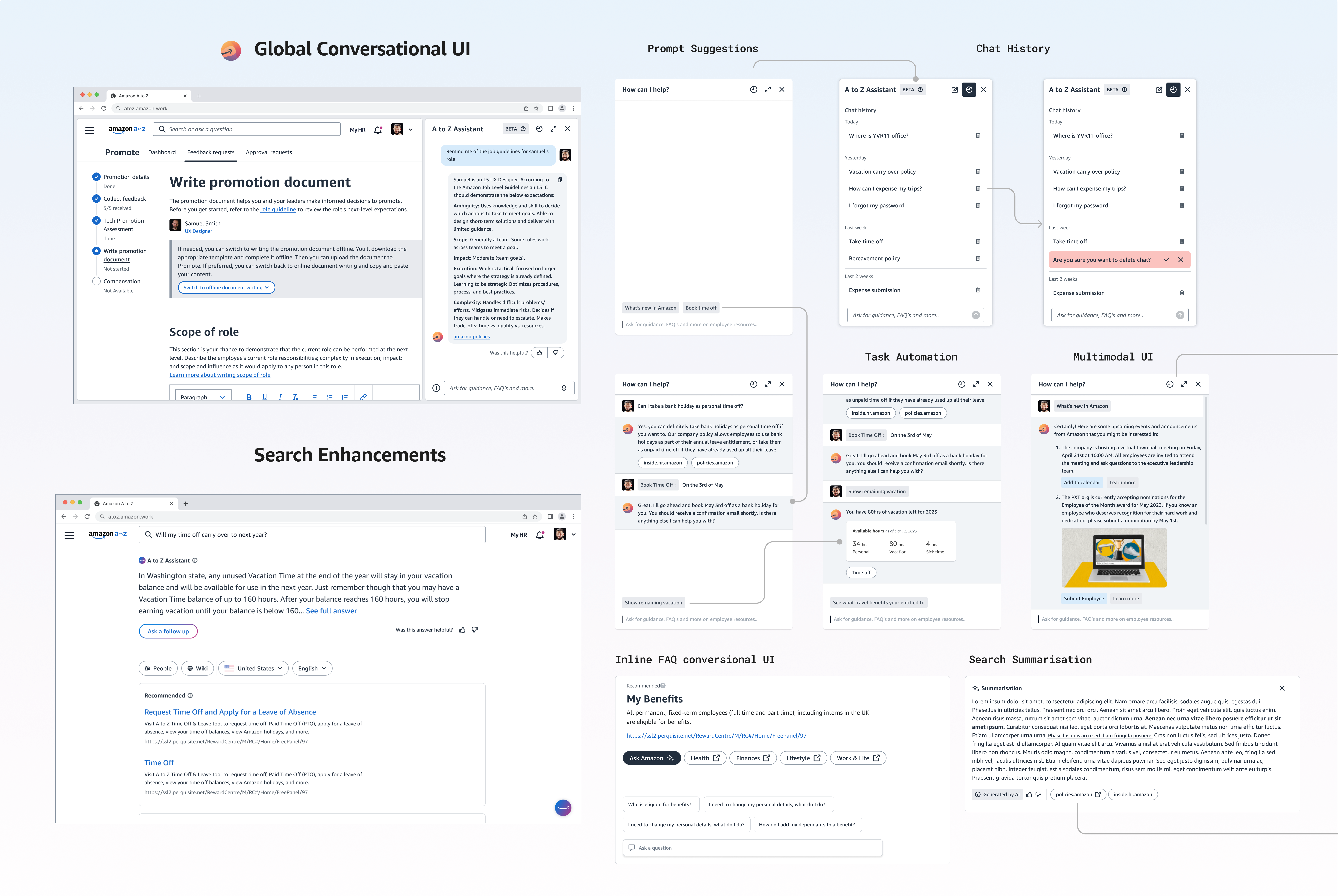 I led the design and research of A to Z Assistant (Amazon Q) a generative-AI assistant that streamlined work for both AWS enterprise customers and Amazonians. Before Amazon Q, people wasted time switching between countless tools and data sources to complete a single task.