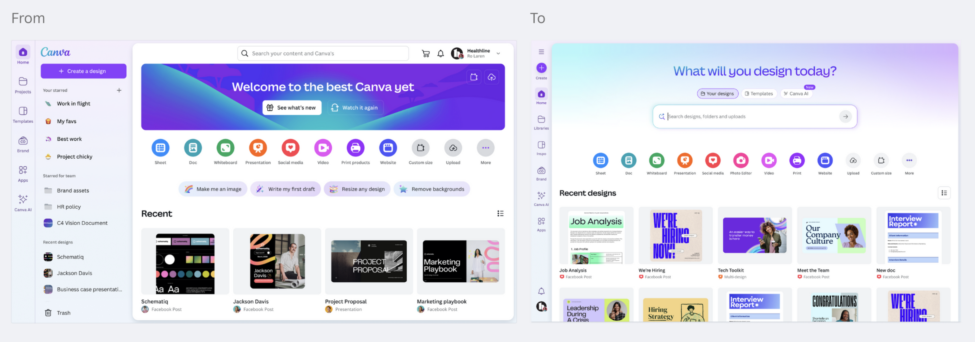 As Canva has grown over the years, so has its complexity. Dozens of new features, overlapping surfaces, and inconsistent entry points, many users found it hard to know where to begin. Features like canva ai, magic media, and templates were scattered across different parts of the product. Especially on mobile, space was tight and discovery felt frustrating.